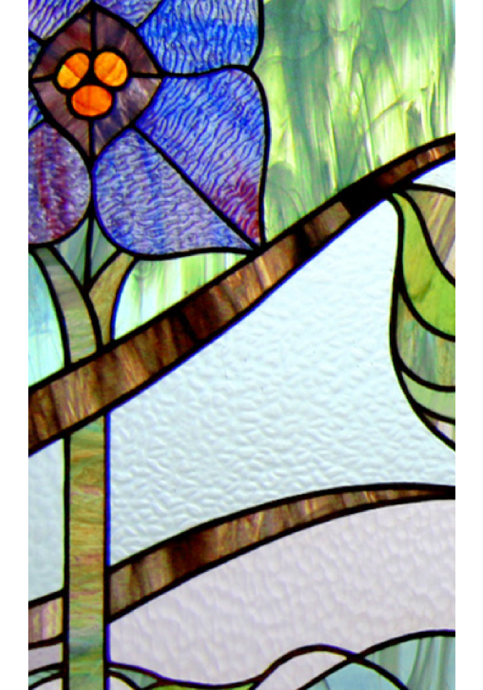 Geam decorativ vitraliu, pe sticla clara securizata de 6 mm. In cazul in care doriti ca sa nu se vada dintr-o camera in alata puteti cere optional matuire pe spatele sticlei, sau matuire partiala. Insertia de usa vitraliu este executata cu cea mai moderna tehnica existenta. Culorile sunt pictate de artisi plastici. Efectele de sticla colorata sunt executate cu rasini sintetice "zis si sticla lichida" perfect transparenta sau opaca in functie de model.Conturul desenului gri antic metalizat sau cupru/auriu (la cerere) este in relief, dand o senzatie de volum pentru vitraliu. Luminile colorate care se creaza prin patrunderea razelor de lumina prin sticla colorata face ambientul placut si fermecator. Ambele fete ale sticlei vizual sunt identice - exceptie conturul care pe partea din fata este si in relief.