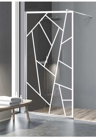 Paravan de dus WALK-IN cu intrare laterala, decorata. Livrare in 7 zile lucratoare! Model decorare prezentat: AQUA ROY ATLAS, din sticla clara SECURIZATA, cu tratament anticalcar 70/80/90/100/110/120 x 195 cm, de 8 mm grosime – executie pretentioasa cu materiale de calitate top si de durata precum si un design minimalist si modern. Culoarea decorului este obtinuta cu cea mai avansata tehnologie nano – fabricat exclusiv in Germania.