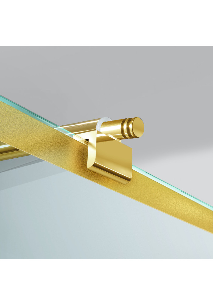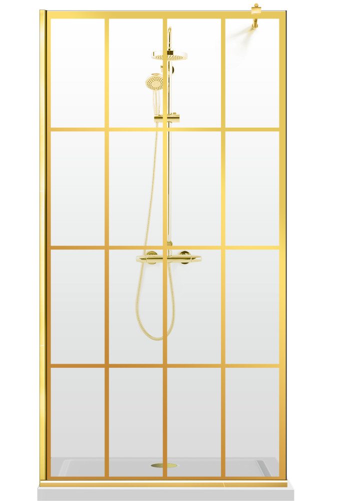 Paravan de dus WALK-IN cu intrare laterala, decorata. Livrare in 7 zile lucratoare! Model decorare prezentat: AQUA ROY GOLD RANK, din sticla clara SECURIZATA, cu tratament anticalcar 70/80/90/100/110/120 x 195 cm, de 8 mm grosime – executie pretentioasa cu materiale de calitate top si de durata precum si un design minimalist si modern. Culoarea decorului este obtinuta cu cea mai avansata tehnologie nano – fabricat exclusiv in Germania.