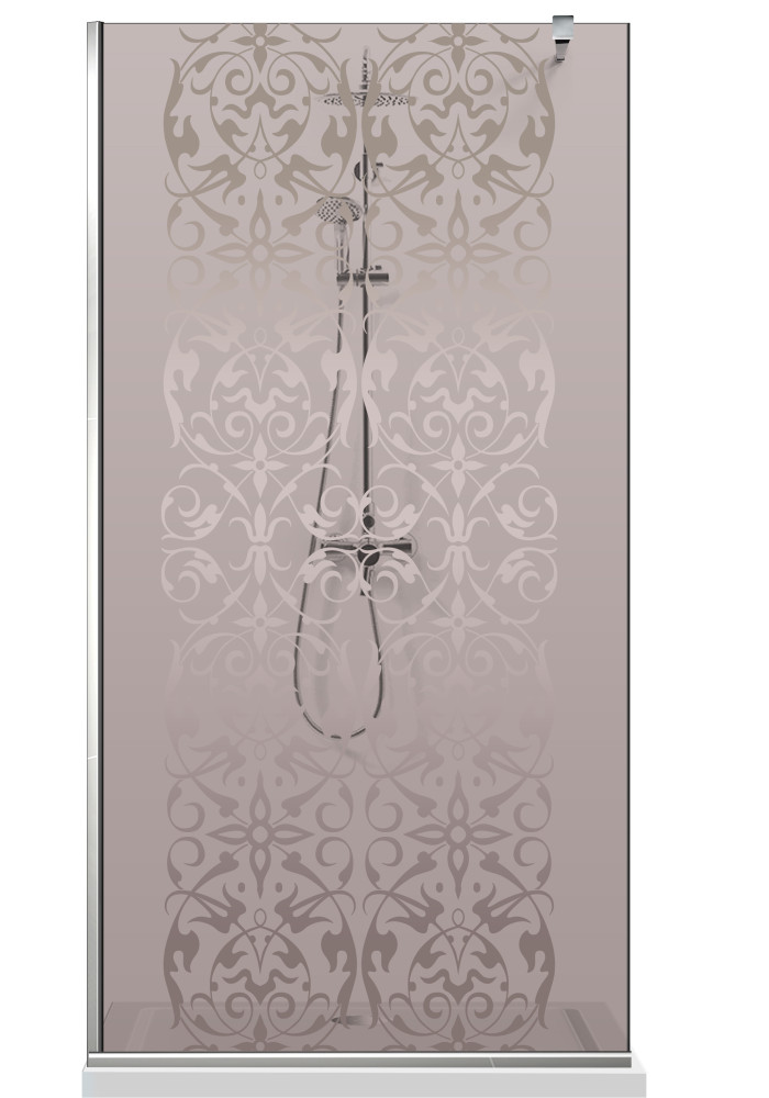 Paravan de dus WALK-IN cu intrare laterala, decorata. Produs personalizat (model, culoare model la alegere) se executa la comanda – livrare in max.7 zile lucratoare!  Model decorare prezentat: AQUA ROY REGENCY DUOdin sticla  bronz  SECURIZATA de 8 mm grosime - executie pretentioasa cu materiale de calitate top si de durata precum  si un design minimalist si modern. Culoarea decorului este obtinuta cu cea mai avansata tehnologie nano – fabricat exclusiv in Germania.