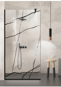 Paravan Cabina de dus Walk-in, (5007), sticla clara decorata, 6mm, AQUA CLASS BLACK model:CODE, feronerie NEAGRA