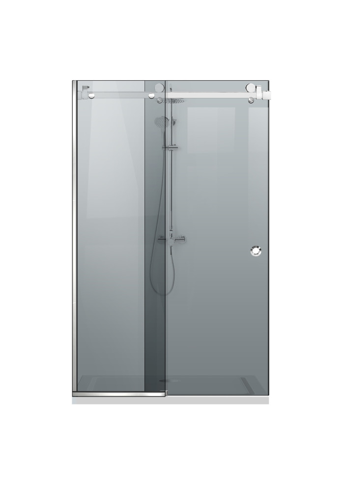Perete de dus cu usa glisanta din sticla gri de calitate germana, securizata, canturi slefuite perfect lucioase include toata feroneria necesara unui perete de dus: