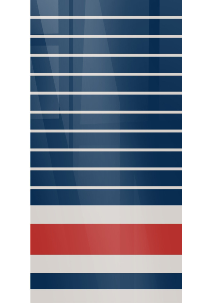 Sticla vopsita cu model in 2 culori RAL sau PANTONE la alegere, pe sticla clara securizata de 6 mm grosime, cu canturi slefuite perfect luciose, inaltime prezentata este de 60 cm. Reproducem orice culoare sau model dorit de client. Sticla colorata sau vopsita se foloseste pentru placari pereti sau mobila. Prin securizare sticla devine termorezistenta si mai puternica de 4 ori. Pentru efect deosebit puteti lumina sticla cu sir de leduri sau spoturi.