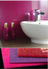 Sticla vopsita, pe sticla clara securizata de 4 sau 6 mm grosime, cu canturi slefuite perfect luciose, inaltime prezentata este de 60 cm. Sticla colorata sau vopsita se foloseste pentru placari pereti sau mobila. Prin securizare sticla devine termorezistenta si mai puternica de 4 ori. Pentru efect deosebit puteti lumina sticla cu sir de leduri sau spoturi.