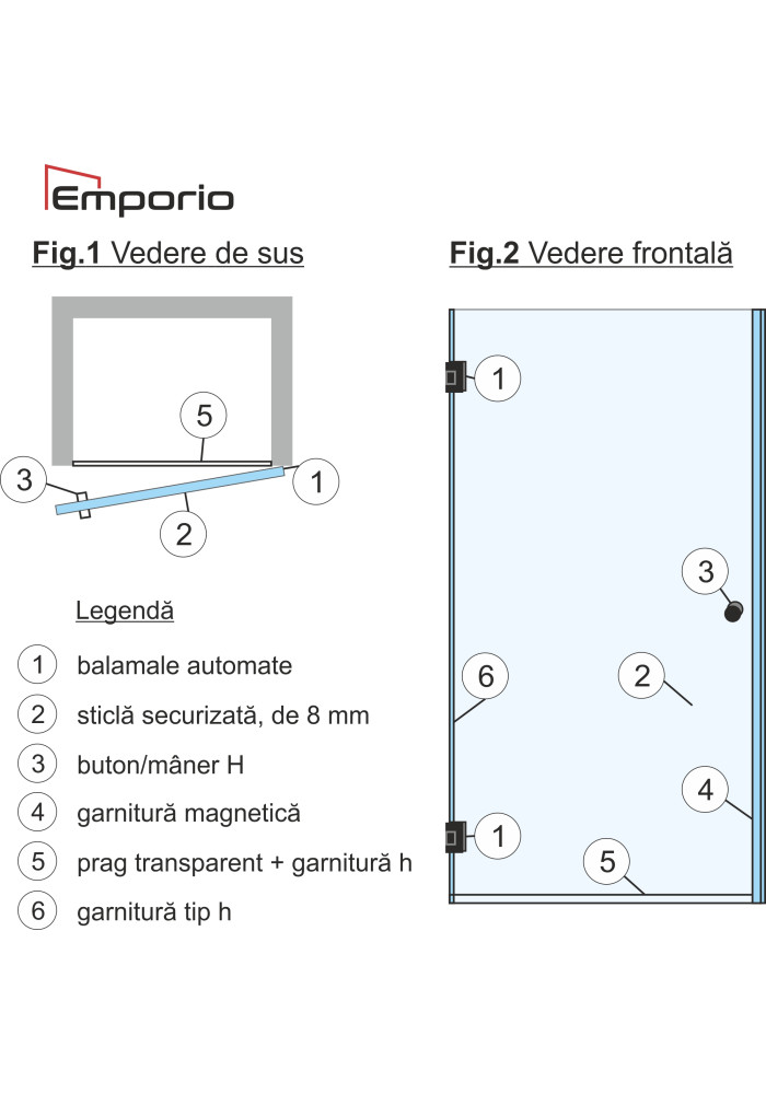 Usa sticla pentru dus, tip batanta, cu inchidere ermetica pe garnitura magnetica, denumire model EMPORIO BLACK 60/70/80/90 x 195 cm