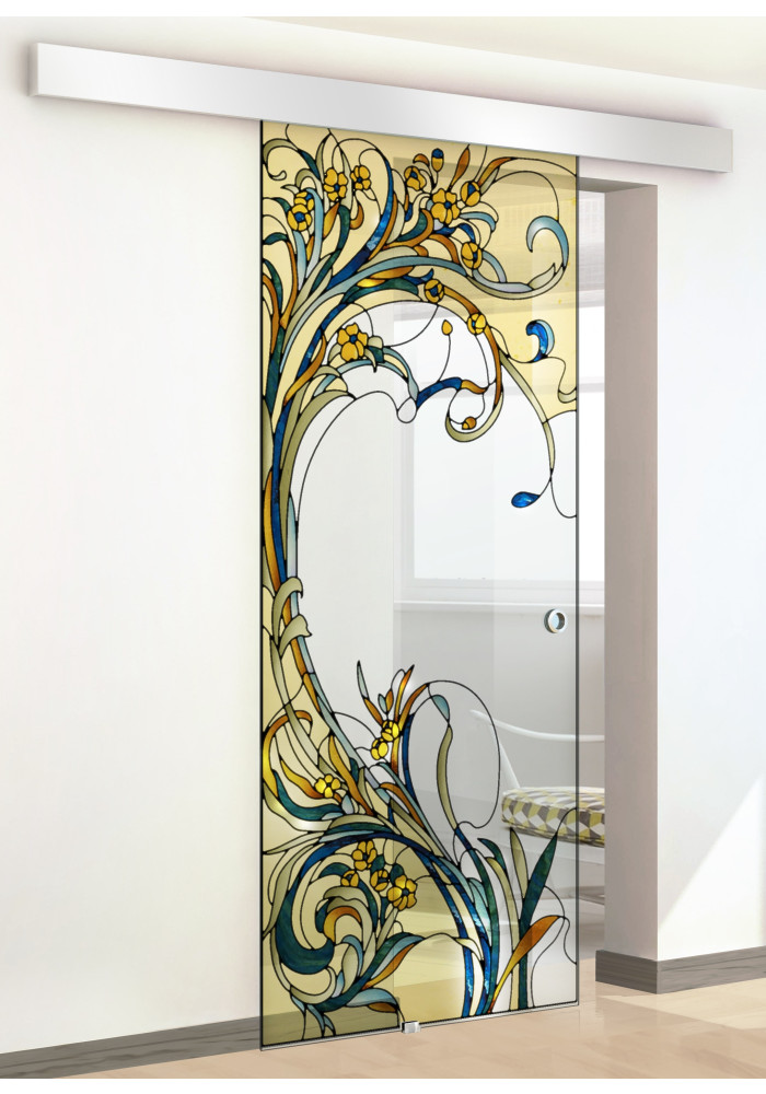 Arta VITRALIU (1.08) pe usa glisanta din sticla clara securizata model PROVENCE cul.2