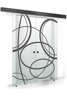 Usa sticla securizata, (0067), tip glisanta din 2 elemente, sticla mata model TREE, 8 mm, BOSS DUO BLACK
