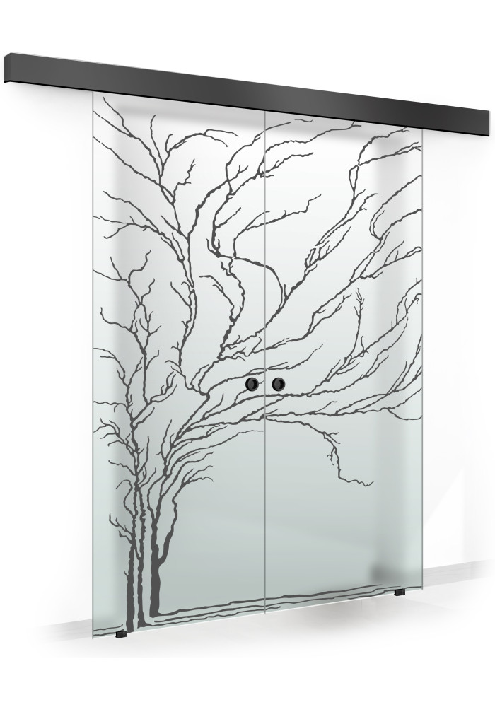 Usa sticla securizata, (0067), tip glisanta din 2 elemente, sticla mata model TREE, 8 mm, BOSS DUO BLACK