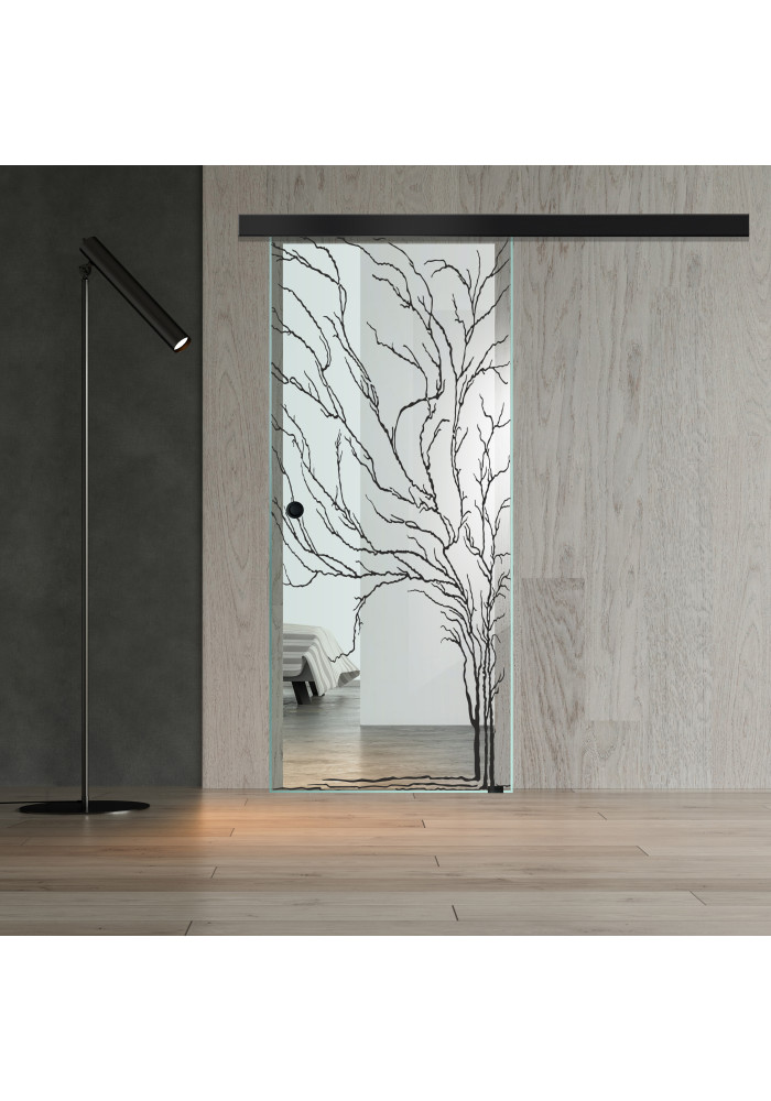 Usa glisanta / Usa culisanta sticla securizata pentru interior denumire BOSS BLACK TREE, culoare clara. Usa sticla da interioarelor efect de spatiu generos, luminozitate si un modernism remarcabil!
