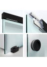 Inainte sa comandati va rugam sa verificati daca aveti loc suficient pe peretele alaturat pe care doriti sa glisati usa de sticla. Mai mult: sina de glisare este prevazut cu opritori, in asa fel puteti seta exact pana la ce distanta doriti sa se deschida usa de sticla.