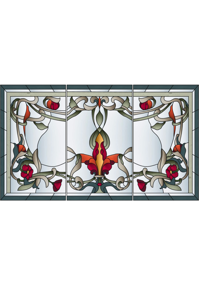 Preturile/termenele de executie difera in functie de technici alese, complexitatea lucrarii si dimensiuniile comandate. Fiecare design de vitraliu de pe acest site poate fi adaptat la dimensiunile dorite de client. Pretul cuprinde adaptarea designului si executia a mai multor reprezentari in mai multe variante de culori. Contactati-ne pentru vitralii de orice complexitate! Executam si restaurari vitralii! Lucram si pe designul clientului! Se poate opta suplimentar pentru: sticla de 6 sau 8 mm, sticla laminata, securizata sau sandwich termopan. Vitraliul reprezentat are dimensiunea de 90x200 cm + 90x200 cm.